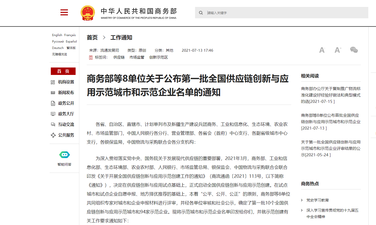 日前,國家商務部、工業(yè)和信息化部、生態(tài)環(huán)境部等8單位聯(lián)合印發(fā)通知,公布全國首批供應鏈創(chuàng)新與應用10個示范城市和94家示范企業(yè)。首衡集團憑借近年來在農產品供應鏈領域的創(chuàng)新成果,成功躋身首批全國供應鏈創(chuàng)新與應用示范企業(yè)。
