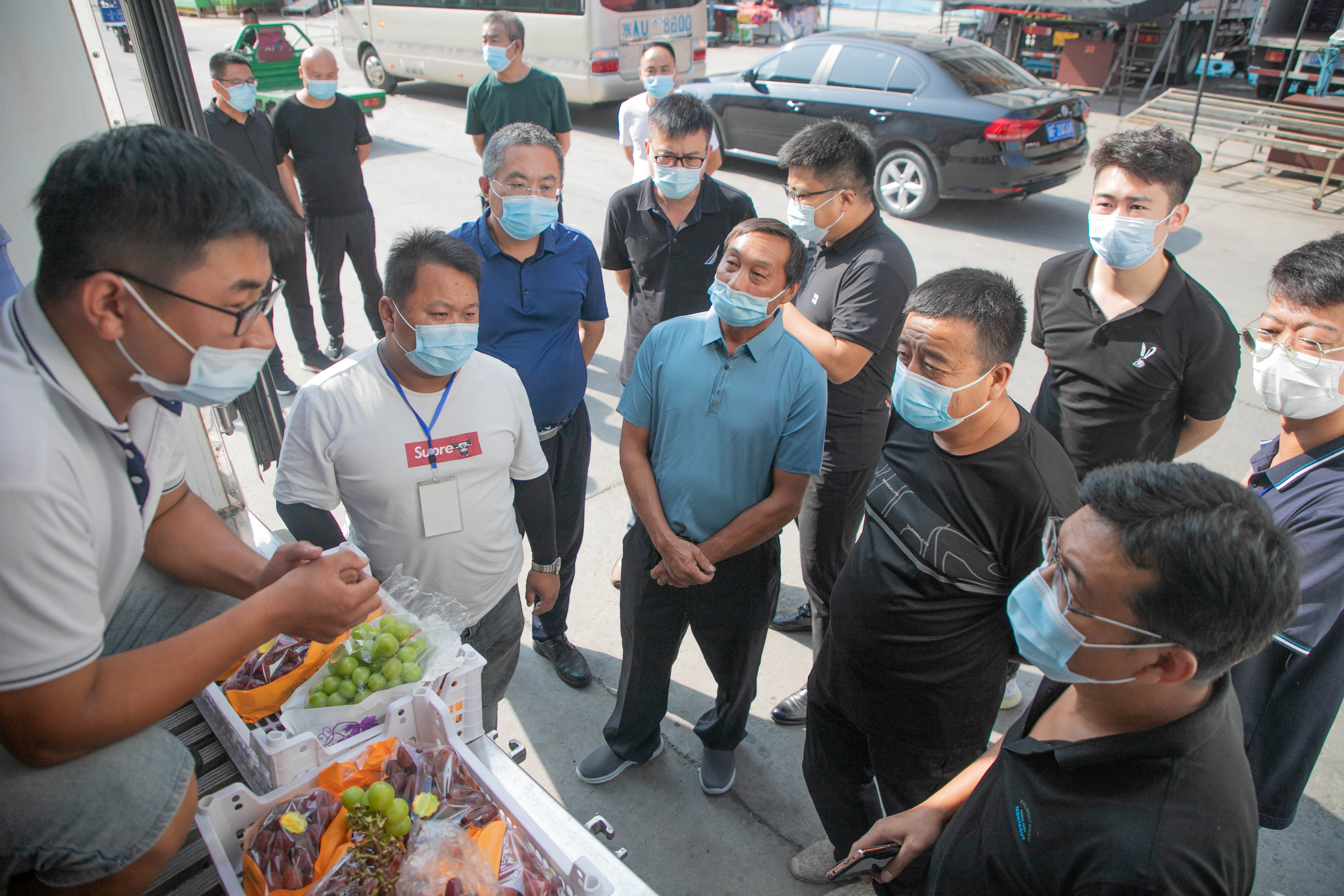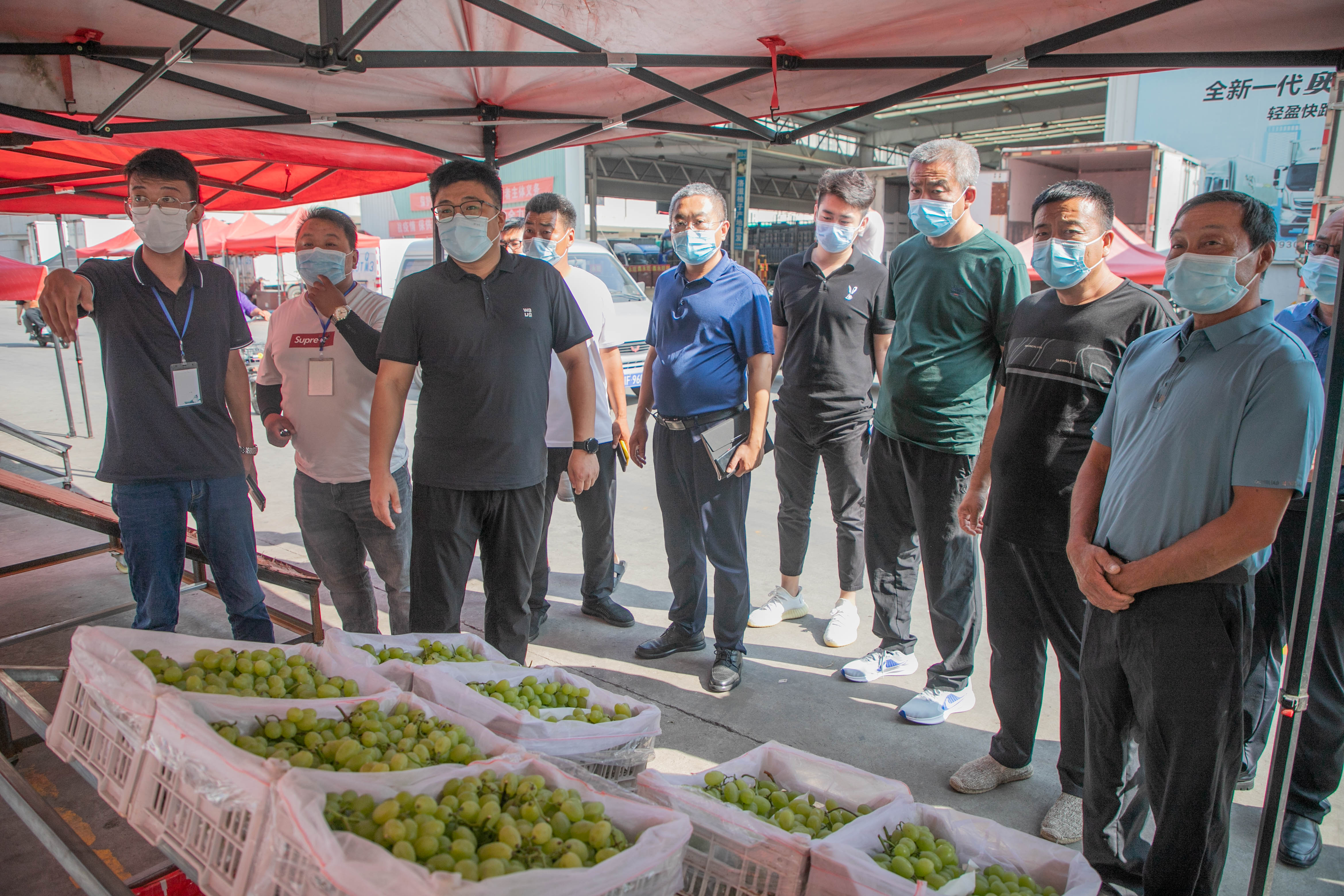 眼下正值葡萄旺季,明媚的8月天,驕陽(yáng)似火,王作丕和團(tuán)隊(duì)成員興致盎然。在葡萄交易區(qū),看到貨艙里的陽(yáng)光玫瑰果形優(yōu)美,顆粒飽滿,大家的熱情十分高漲。在即將竣工的首衡河北新發(fā)地冷鏈基地項(xiàng)目,得知高碑店市場(chǎng)在承接京津冀農(nóng)產(chǎn)品貿(mào)易方面扮演著舉足輕重的角色后,王作丕感嘆河北新發(fā)地是憑一個(gè)企業(yè)盤(pán)活了一個(gè)區(qū)域。