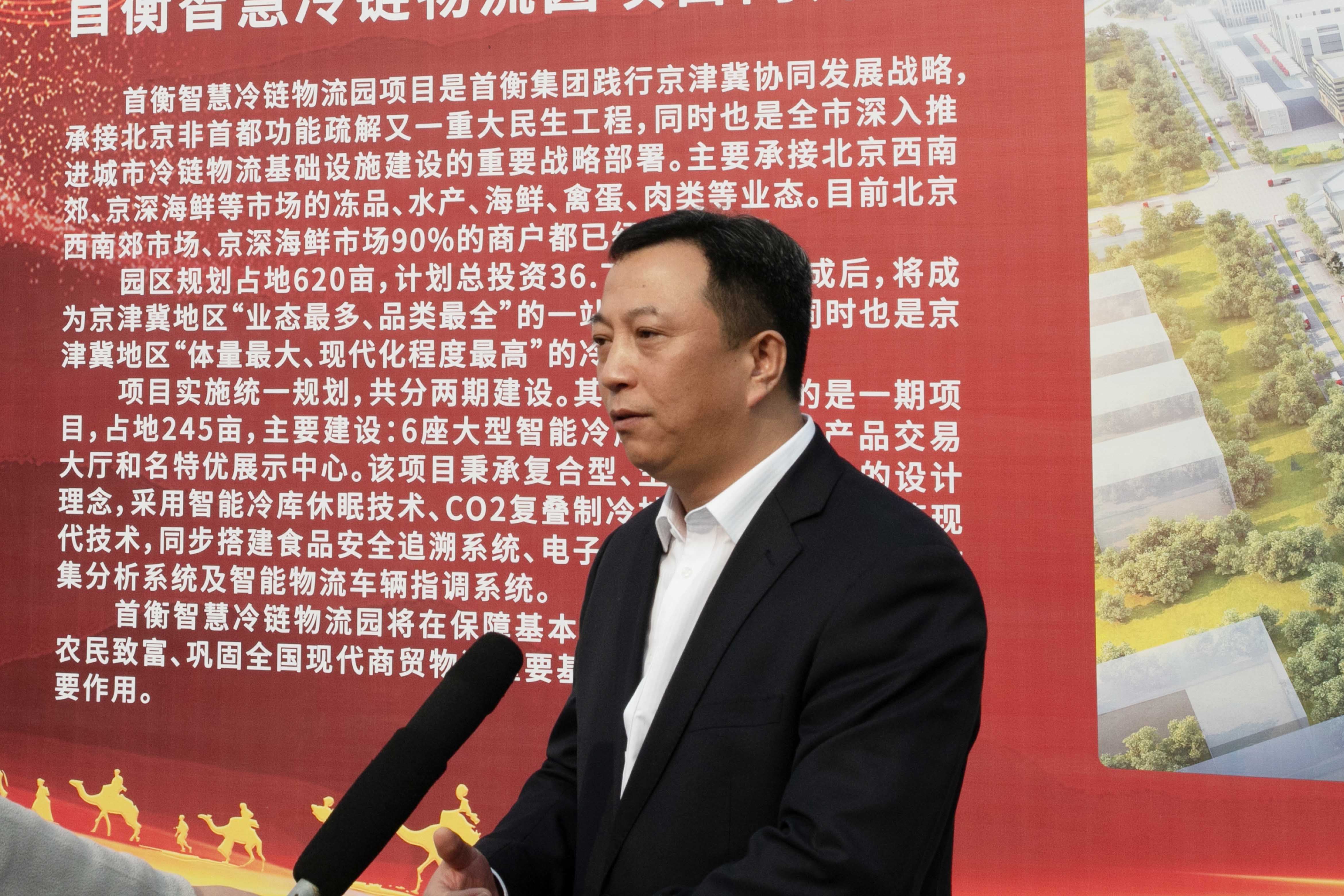 開幕儀式現(xiàn)場,首衡集團董事長米亞林對項目情況和未來發(fā)展做了簡要介紹。“我們是京津冀協(xié)同發(fā)展的參與者、建設(shè)者,首衡智慧冷鏈物流園是集團踐行京津冀協(xié)同發(fā)展戰(zhàn)略,承接北京非首都功能疏解又一重大民生工程,我們將借助高碑店市的區(qū)位優(yōu)勢,將項目打造成集交易、倉儲、物流、電商、配送等一體的國際凍品交易中心,成為華北地區(qū)智慧冷鏈物流集群新標桿。項目的落地,將進一步提高“環(huán)京津一小時鮮活農(nóng)產(chǎn)品物流圈”內(nèi)生鮮農(nóng)產(chǎn)品的倉儲保鮮能力,成為京津冀地區(qū)最重要的綠色農(nóng)產(chǎn)品安全保供基地,作為北京民生保供的“大冰箱”,筑牢首都農(nóng)產(chǎn)品保供的“壓艙石”。”米亞林表示。