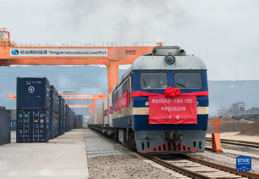新華社昆明12月4日電(記者姚兵)12月4日,一列滿載云南特色農產品的冷鏈集裝箱組成的中老鐵路列車從昆明騰俊國際陸港駛出,預計于12月5日抵達老撾萬象南站。