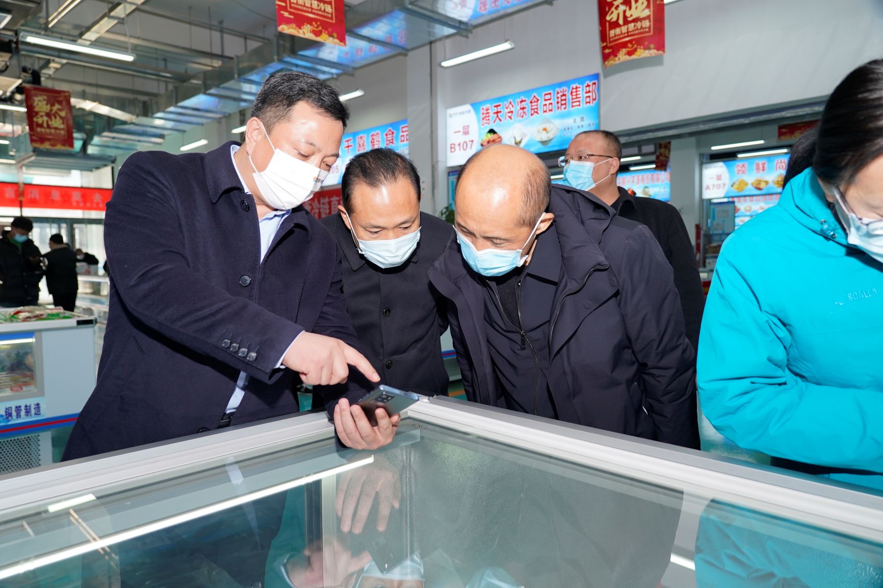 調研組一行首先到首衡高碑店市場品牌展廳進行參觀,并走進園區與商戶進行溝通交流,了解產品銷售情況。隨后,調研組來到首衡智慧冷鏈物流園進行重點考察。并對園區整體運營情況和產品可追溯,園區指調系統等智能化、智慧化管理進行詳細了解。