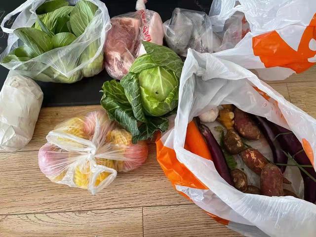 洪女士介紹,在App下單后,第二天便會收到“暖心包”,里面有菜也有肉,還有蔥、姜、蒜等調料,甚至還有水果, “我感覺,就算平常在外面商超菜市里買,這些東西肯定也不止30塊錢。”