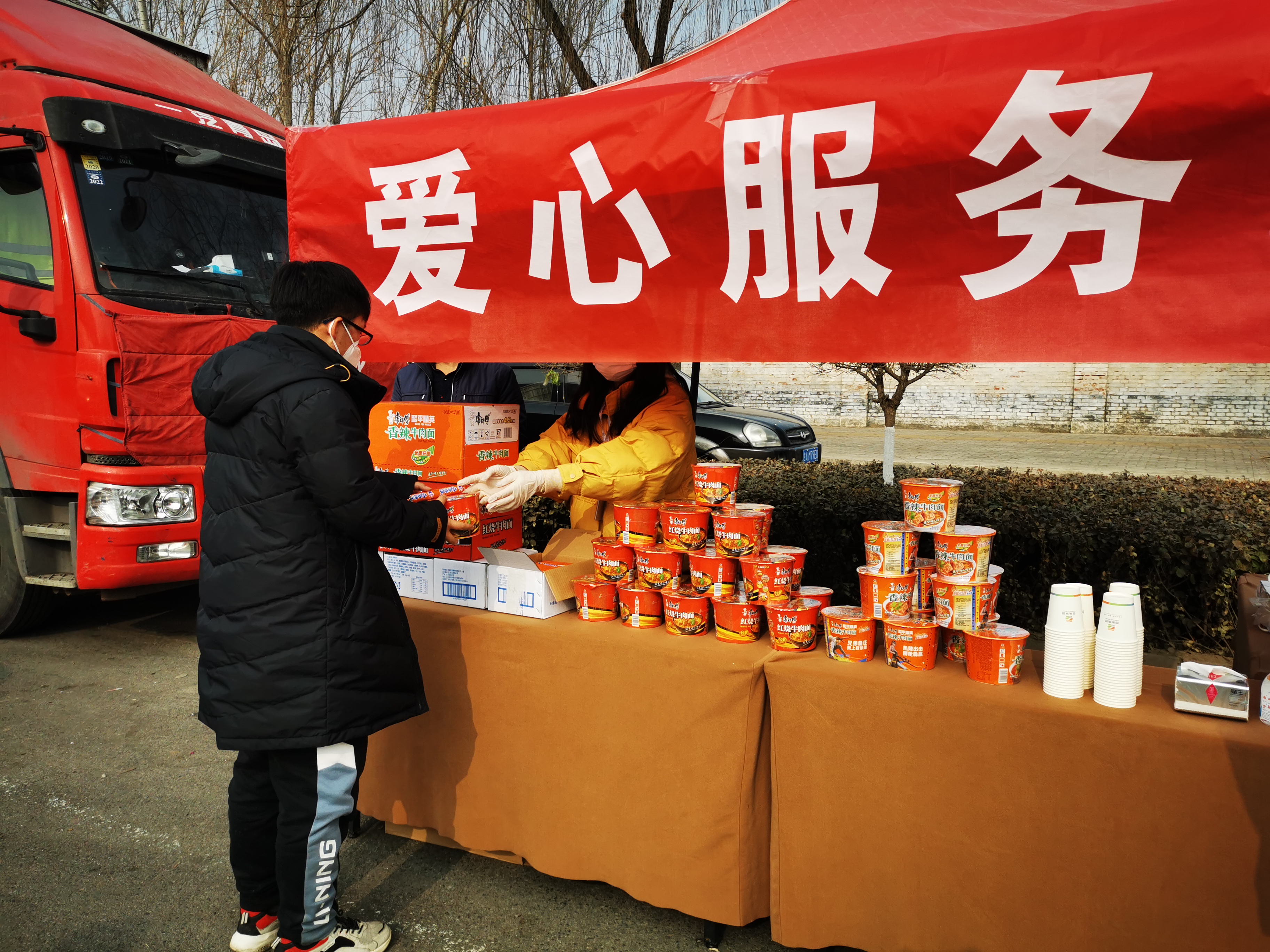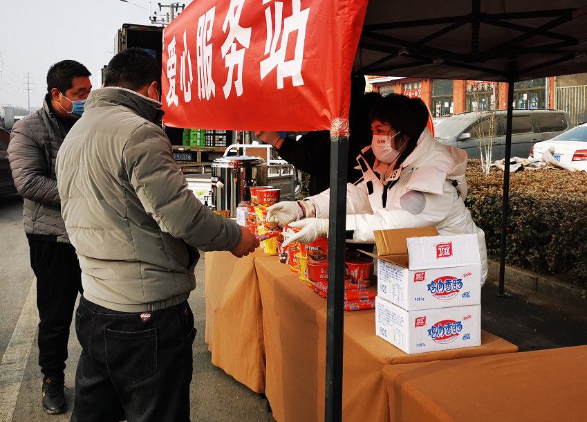 “這不都要過(guò)年了,周圍好多餐飲店也關(guān)門了,我們吃飯也不方便,這不給我們免費(fèi)的方便面,還有熱水,我在車上就把飯吃了,很貼心。”來(lái)自張家口的物流司機(jī)王強(qiáng)表示,“正好,吃口熱乎的,車也裝滿了,我下午就到張家口了。”