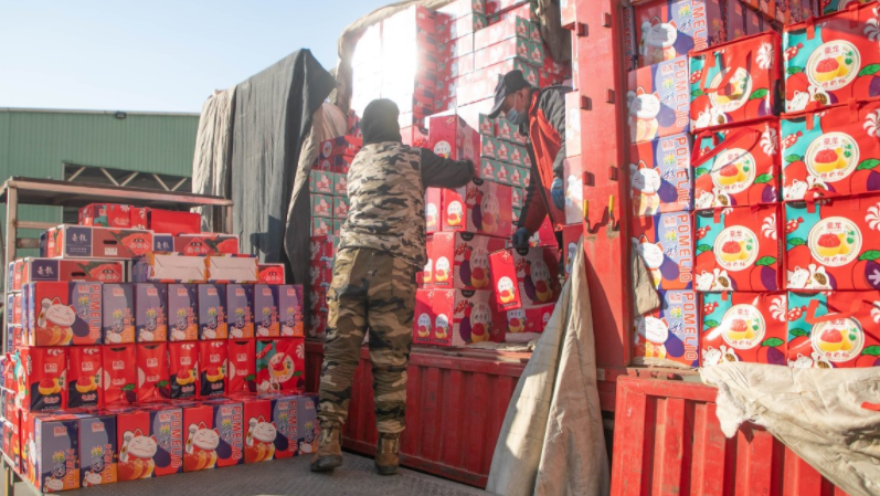 不僅是蔬菜,市場內的水果也儲備充足,源源不斷供給三北地區。在橘橙交易區,橘橙商戶楊建永正在安排進場物流車,“目前,橙子主要存放在江西贛州、湖北宜昌、湖南新寧等產地的產地倉,儲量很大,正在陸續進入市場。”楊建永說,因為南方雨雪,物流受到一些影響,他們都安排提前發車,或根據需要調整物流線路。“最近橘橙價格相比年前有一定的回落。”