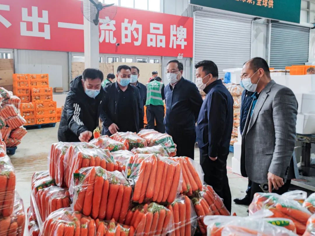 4月1日,河北省人民政府常務(wù)副秘書長王素文,省農(nóng)業(yè)農(nóng)村廳黨組書記王國發(fā),省商務(wù)廳黨組書記、廳長張鋒等領(lǐng)導(dǎo)帶隊到首衡河北新發(fā)地組織調(diào)度,為上海市籌集生活保障物資。在接到省委省政府物資籌備任務(wù)后,高碑店市委市政府緊急部署,首衡河北新發(fā)地董事長米亞林親自指揮,第一時間迅速啟動應(yīng)急保供機制,火速調(diào)配人員,成立集貨組、品控組、加工組、物流調(diào)配組、疫情防控組、食品檢測組、外聯(lián)協(xié)調(diào)組,嚴(yán)密配合,確保貨物快速集結(jié)、分揀、包裝,安全輸送。