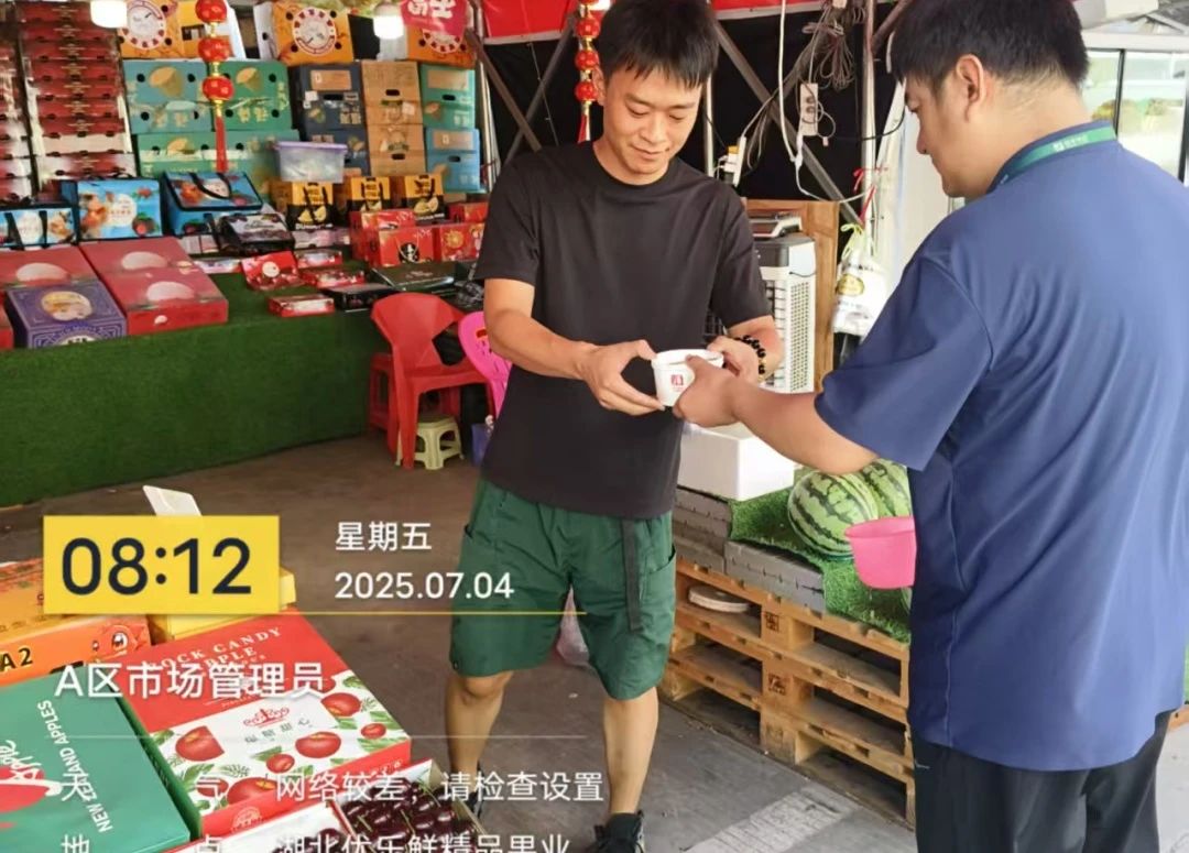 連日來,孝感市持續高溫,氣象部門多次發布高溫橙色預警,市場內溫度計直逼40℃。在炙熱如烤的市場里,一群首衡人正用汗水詮釋責任,用堅守保障供應。他們戰高溫、保運營,確保華中地區重要的農產品供應鏈暢通無阻。