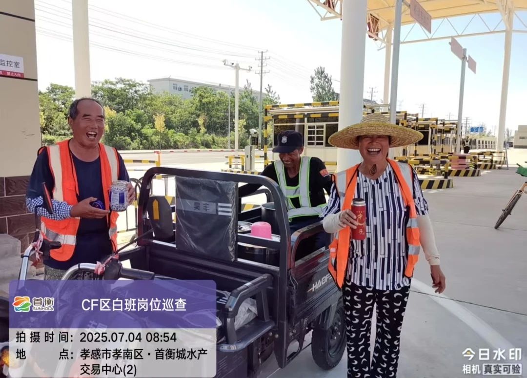 市場配備2臺灑水車降溫,每天發放藿香正氣水、風油精、人丹、花露水等防暑藥品200余份,確保作業人員健康安全。