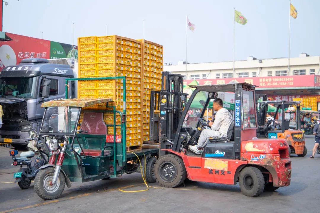 走進(jìn)首衡高碑店市場水果交易區(qū),眼前的景象令人振奮。前來批發(fā)采購的客商絡(luò)繹不絕,滿載產(chǎn)品的短駁車在市場內(nèi)不停穿梭。洽談、卸貨、搬運(yùn)、裝車……各個(gè)環(huán)節(jié)都顯得井然有序,呈現(xiàn)出一派繁榮景象。