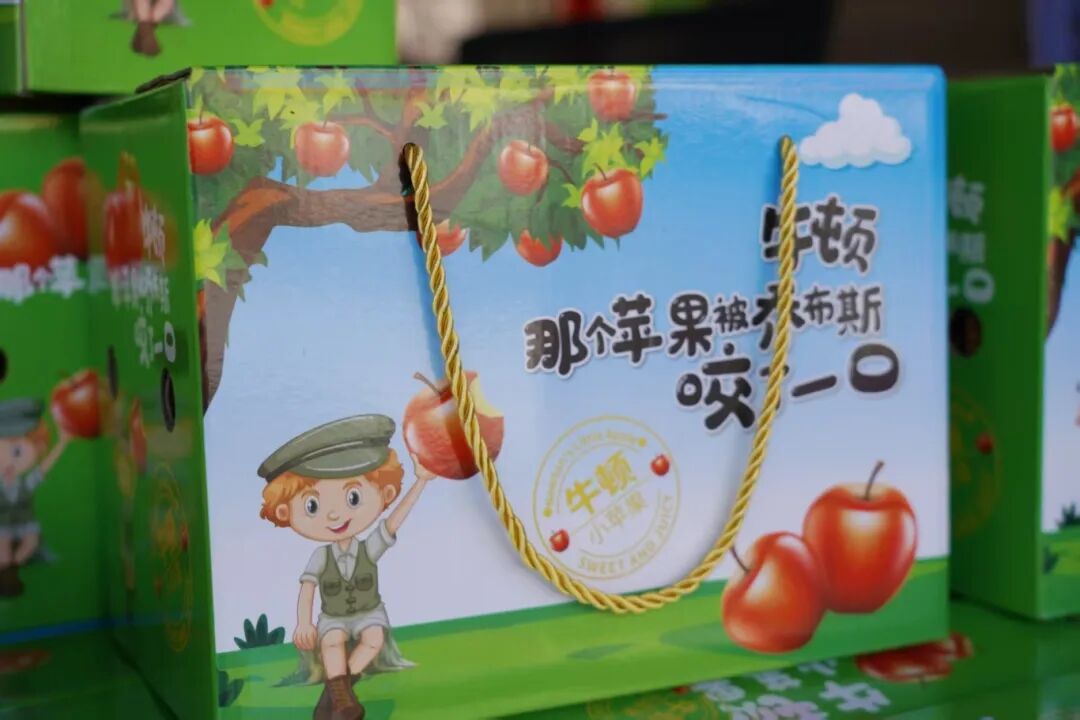 為了給這批特殊的蘋果賦予新的市場價值,萃玉果業(yè)將其命名為“牛頓小蘋果”。這一命名源自包裝上那句巧妙的雙關(guān):“牛頓 那個蘋果被喬布斯咬了一口”——既呼應(yīng)牛頓因蘋果發(fā)現(xiàn)萬有引力的科學啟迪,又關(guān)聯(lián)喬布斯以蘋果標志改變世界的創(chuàng)新精神。