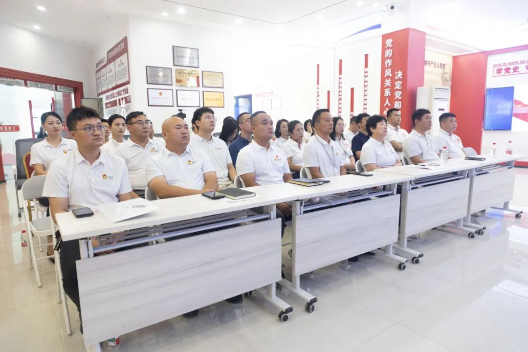 隨后,王景榮副書記在觀看閱兵前發表動員講話,并面向全體參會人員強調,一是要認真觀看,全體黨員需以高度重視的態度維護會場秩序,全神貫注投入觀看:既要認真聆聽黨和國家領導人的莊嚴講話,深刻領會講話中的精神內涵;二是要聚焦閱兵細節,從大國儀仗中感受國家威儀,從先進裝備中見證國防力量;“前人浴血榮光映照今朝和平”的共鳴中,增強做中國人的志氣、骨氣、底氣,珍惜當下來之不易的發展環境。三是要聯系實際推動工作,要將觀看閱兵激發的愛國熱情、自豪感和使命感,迅速轉化為立足崗位、奮發作為的實際行動,轉化為攻堅克難、推動企業創新發展的強大動力。