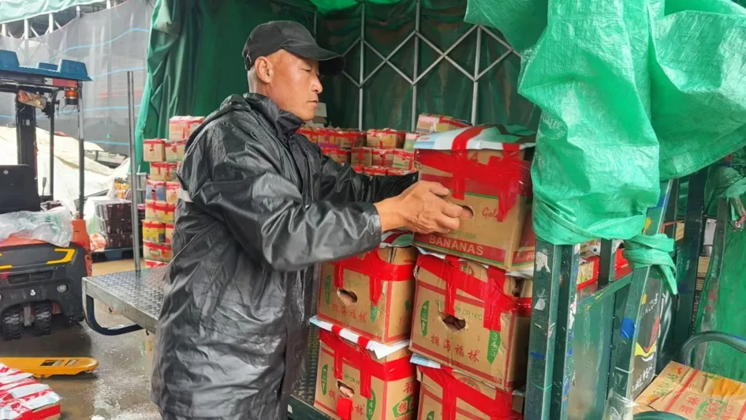 水果行業(yè)最怕雨天。雨水帶有腐蝕性,裝卸時(shí)一旦淋濕,鮮度下降、損耗陡增,直接影響銷售。許旭剛到首衡時(shí)就遇到了“傘位緊張”的難題。“冬天下雪、夏天暴雨,等排隊(duì)裝車的時(shí)候遇上天氣突變,哪怕車蓋了布,貨也容易受損。”