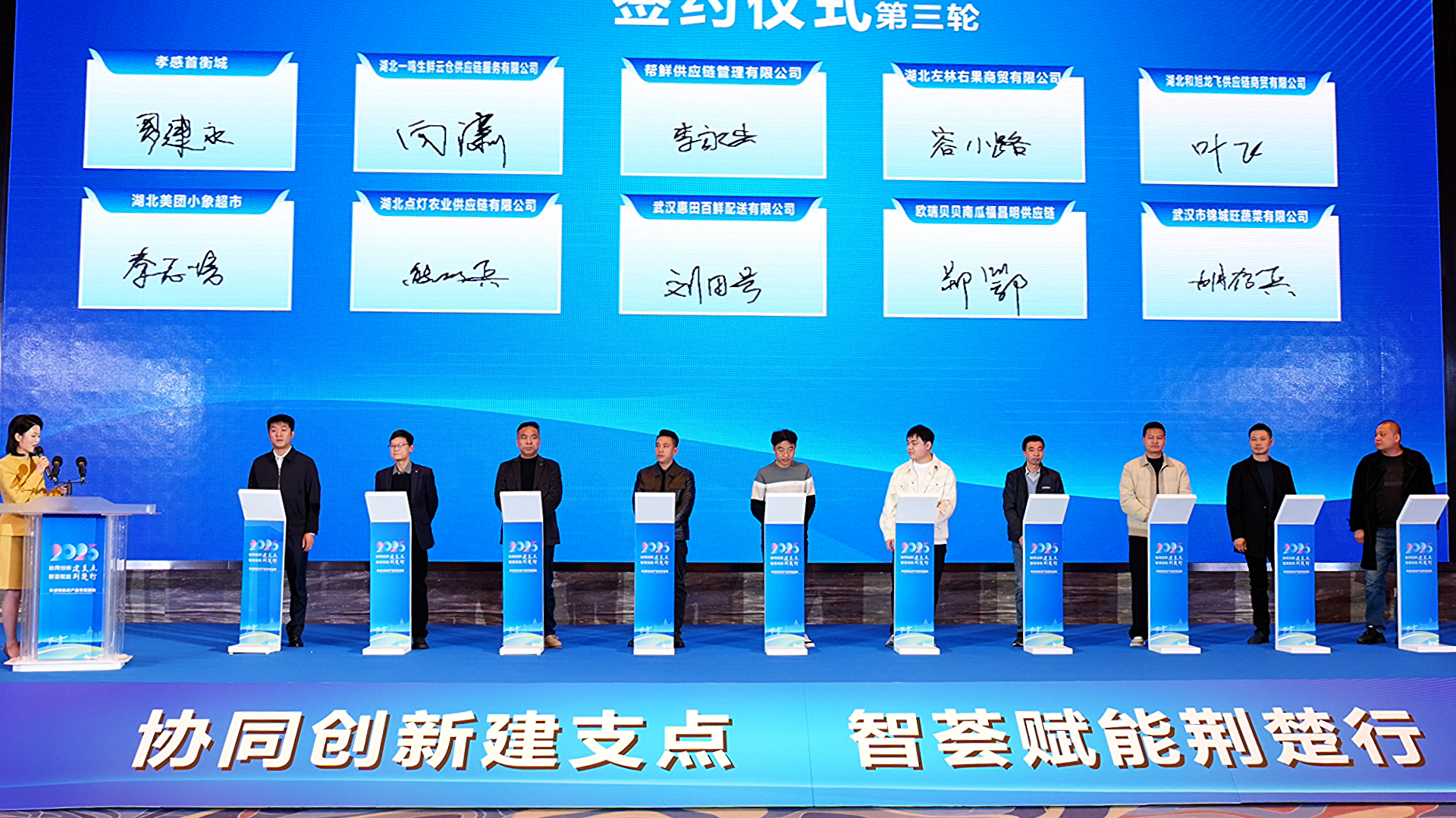 首衡城副總經理侯越正式發布《孝感首衡城農產品產業升級需求清單》,指出首衡城具備采購平臺、集配服務、供應鏈、海外代采、自有物流和專業團隊六大核心優勢,呼吁產業鏈各方攜手共享紅利,“共同打造華中農產品流通新標桿”。現場還舉行了多輪簽約儀式,首衡城與多家優質商戶達成合作,標志著又一批優質合作伙伴正式融入首衡生態圈。