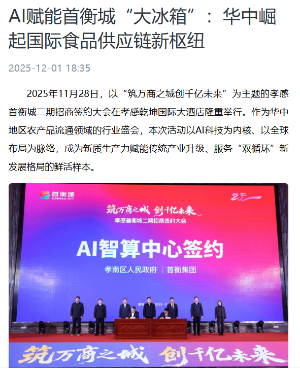 《工人日報》《湖北日報》等關注首衡AI智算中心,本次活動以AI科技為內核、以全球布局為脈絡,成為新質生產力賦能傳統產業升級、服務“雙循環”新發展格局的鮮活樣本。