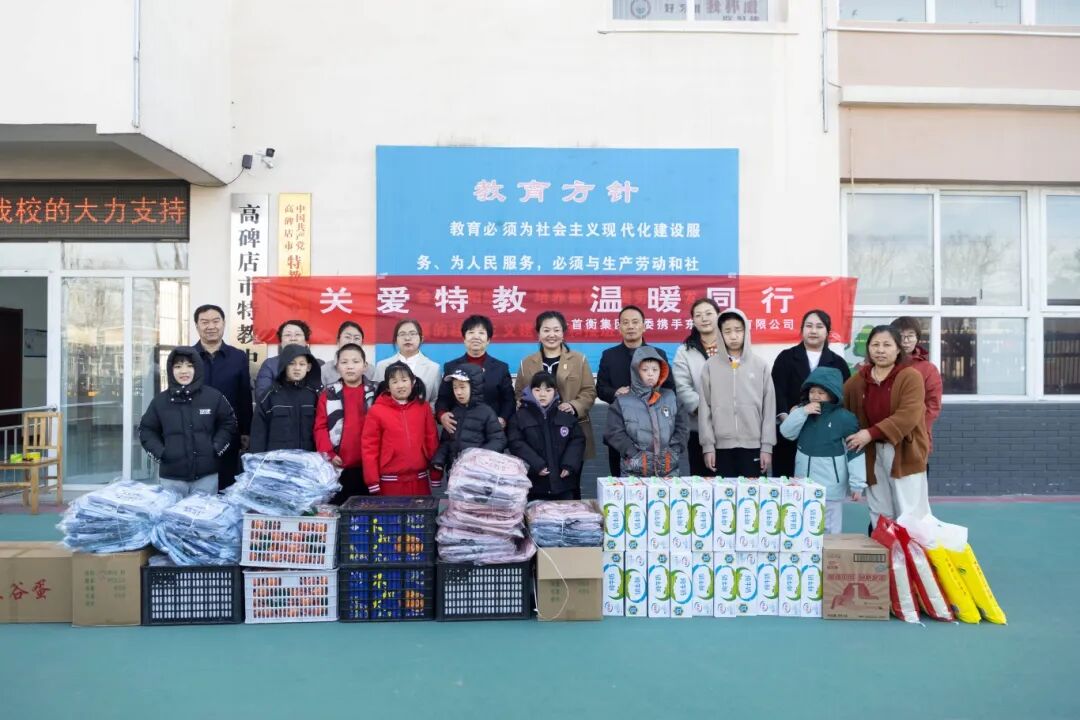 首衡呵護特殊的蓓蕾。首衡黨委聯合愛心企業與商戶,為高碑店特殊教育中心,送去了文具和豐富的營養物資。