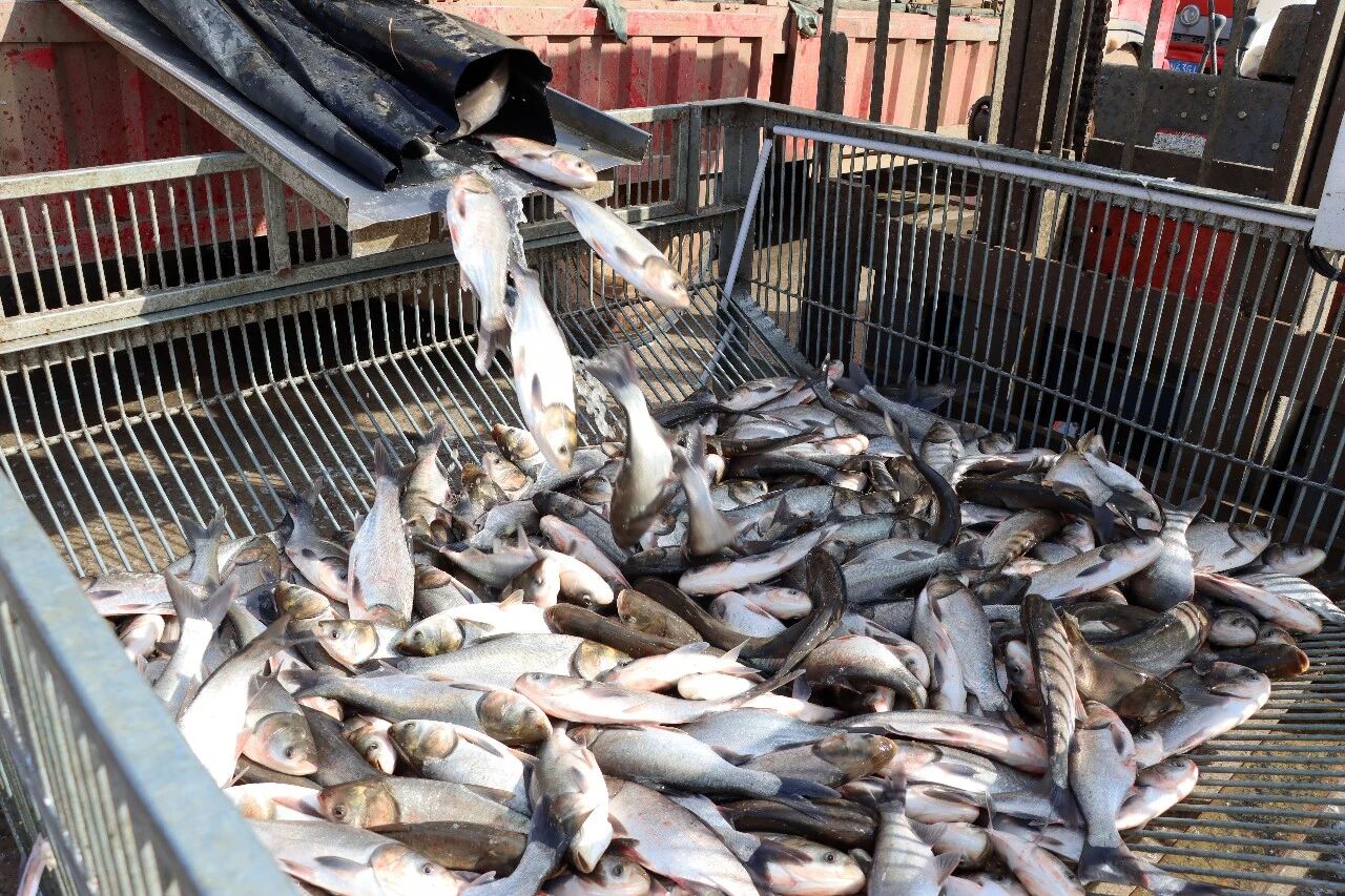 “以花鰱為主,還采購鯽魚、鯉魚、鳊魚等,每天進貨4萬斤,發往四川瀘州、宜賓、成都、重慶等主要市場,我們那邊需求量大,我每天都是兩臺車在這里滾動式采購。”來自四川瀘州的采購商石海指著身邊的貨車介紹。