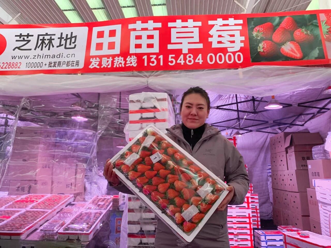 “眼下正值草莓銷售旺季,日銷量一天比一天高,臨近春節,我們每天兩車新鮮到貨,基本當天就能售罄,根本不愁賣!”檔口負責人田苗一邊麻利地給草莓封膜,一邊笑著說道,眉眼間滿是實干的勁頭。